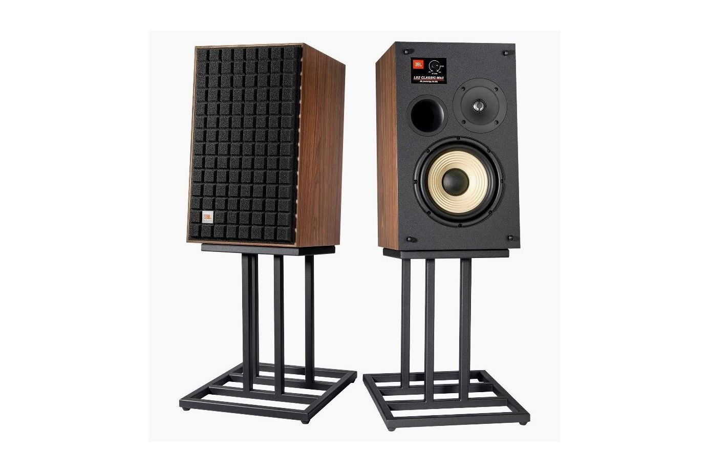 I förpackningen medföljer ett par JBL L82 Classic MkII högtalare i spegelvänd konfiguration samt frontgaller (Quadrex) i vald färg. Övriga tillbehör som stativ köps separat.Skillnad mellan JBL L100 Classic MKII 3-vägs stativhögtalare och JBL L82 Classic MKII 2-vägs stativhögtalare