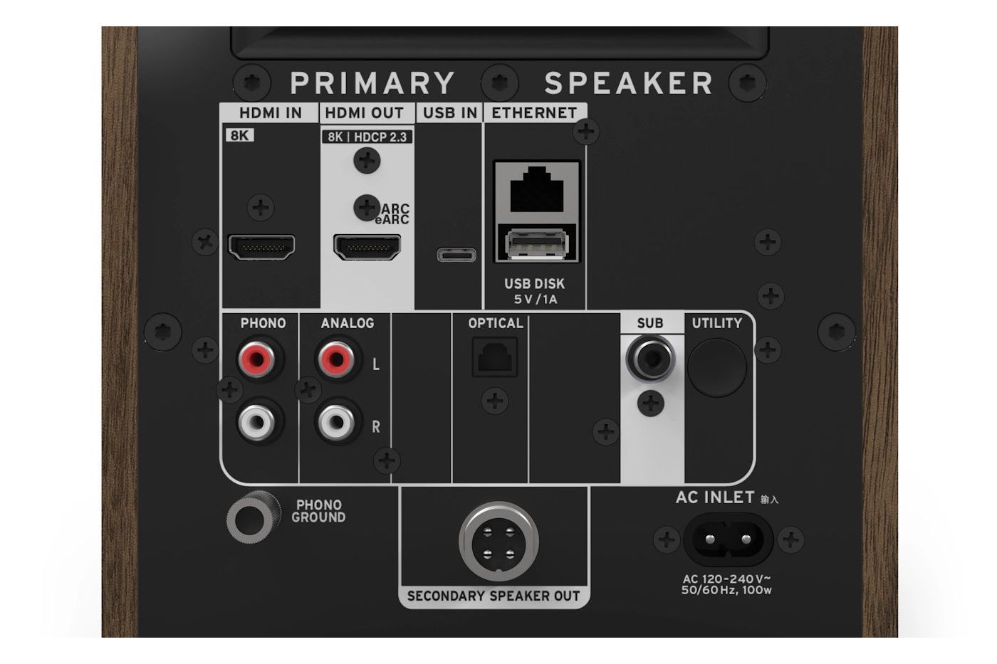 The Fives II fungerar som en komplett hubb för både ljud och bild. De är utrustade med HDMI eARC för TV-ljud samt HDMI 2.1 pass-through med stöd för 8K, HDR10+, Dolby Vision, VRR och ALLM.Utöver detta finns optisk digital ingång, USB-C, USB-A, RCA inklusive phono-ingång för skivspelare (MM) samt Bluetooth 5.4 och WiFi för trådlös streaming.