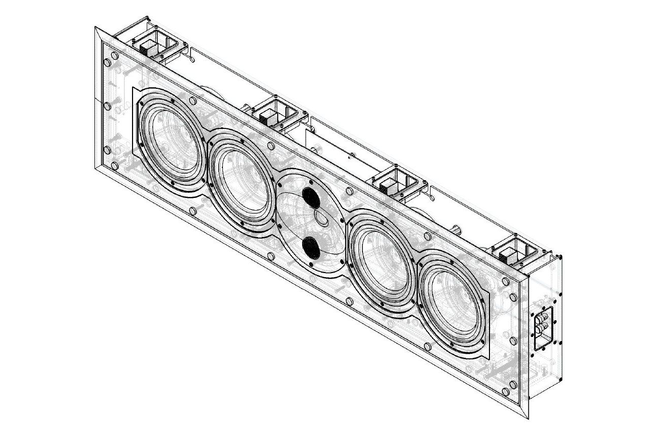 Kabinetten i Perlistens architectual-serie är precis som sina traditionella syskon väl uppstagade för att klara av de enorma påfrestningar de kraftfulla elementen genererar. En stabil och resonansfri baffel ger ett rejält fundament för elementen att vila på och lådans volym är omsorgsfullt uträknad för att maximera prestandan på alla element, över hela registret. Lådan är tillverkad i aluminium som sedan omsorgsfullt dämpats internt med flera lager av asfaltsmattor.Kabinettet i sig är av sluten konstruktion vilket gör att högtalarna inte behöver kompletteras med en separat back box. Kabinettet bygger endast 101.7 mm på djupet vilket gör att det passar i de flesta väggar utan modifiering.