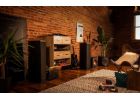 Med R-820F får du en lättdriven högtalare med tydlig diskant och mycket bas. Dubbla 8 tums element spelar i kabinettet tillsammans med en 1 tums diskant som sitter i ett Tractrix horn. På baksidan hittar vi en basport som ytterligare stärker upp basljudet. Högtalaren väger in på 24.5 kg och är 1,1 meter hög.