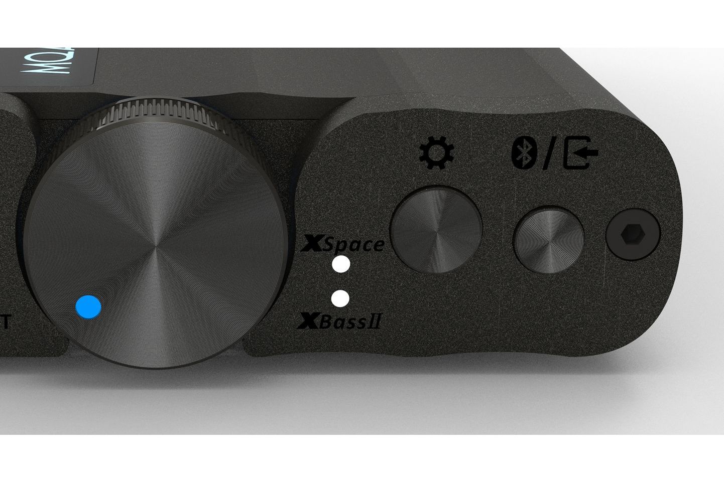 Med det multifunktionella vredet på sidan kan du starta och stänga av xDSD Gryphon, höja eller sänka volymen, mutea musiken eller nå inställningsmeynerna.