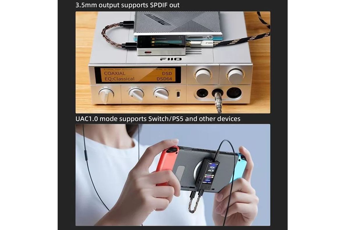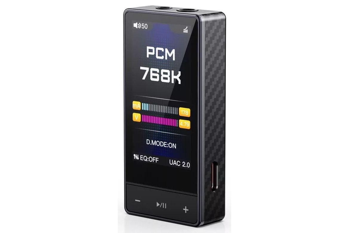 "Ultrakompakt DAC och hörlurförstärkare med ESS ES9027SPRO DAC (32bit/768kHz, DSD512), OP-ampar från TI, balanserad- och obalanserad hörlursutgång, 1.99-tums IPS-display och en maximal uteffekt på hela 900mW!"