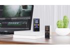 Det medföljande magnetiska läderfodralet skyddar enheten och ger ett elegant helhetsintryck. För mobil användning kan den kombineras med E-Stick Power Bank, och med E-Stick Combo Case förvandlas enheten till en portabel desktop-lösning – alltid redo för högklassigt ljud, var du än befinner dig.