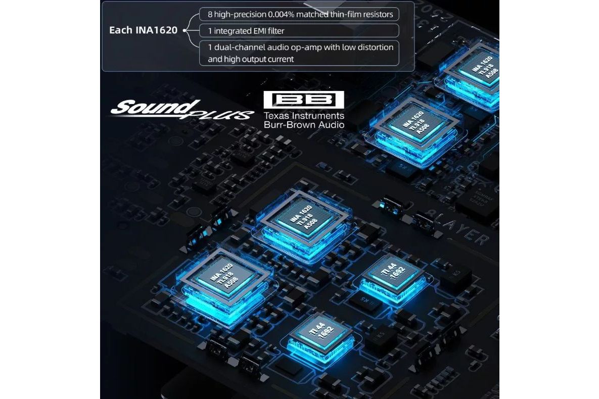 Med sex högklassiga OP-ampar från Texas Instruments levereras ett dynamiskt, rent och kontrollerat ljud oavsett belastning. Uteffekten på upp till 900 mW per kanal (via balanserad utgång i Desktop Mode) ger mer än tillräcklig kraft för att driva även tungdrivna hörlurar med full kontroll och musikalitet.