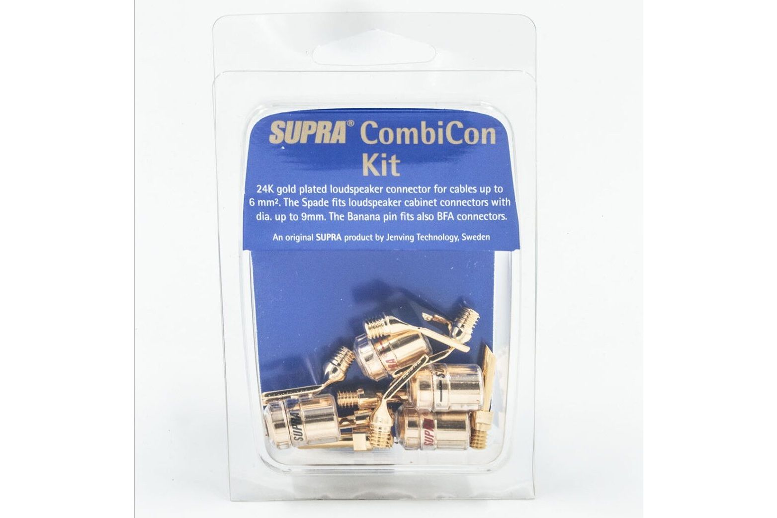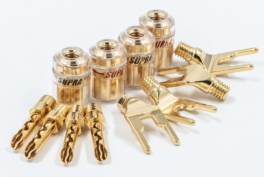 Supra CombiCon-serien är utvecklad för att ge maximal flexibilitet vid högtalaranslutningar. Systemet gör det möjligt att snabbt byta mellan banankontakter och spadterminaler beroende på hur förstärkare och högtalare är utformade.Den modulära konstruktionen gör att du kan ändra kontakttyp utan att behöva byta hela kontakten eller göra om kabeltermineringen. Det ger stor frihet om du byter utrustning eller vill ändra anslutningen i framtiden.