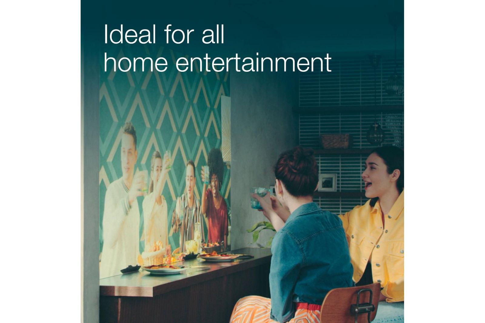 Upplev filmer, sport och spel i hög kvalitet på storbildsskärm med denna kompakta 4K PRO-UHD hembioprojektor. Förvandla ditt hem till en scen för all underhållning med projektorns 4K PRO-UHD-upplösning och optimerade spellägen. Med skarpa detaljer, djup svärta, mjuka rörelser och enkel anslutning samt smidig installation och justering, är den ett förstklassigt val för hemunderhållning. Projektorns kompakta och stilfullt böjda design gör att den lätt passar in i alla miljöer.Spela spel på stor bild