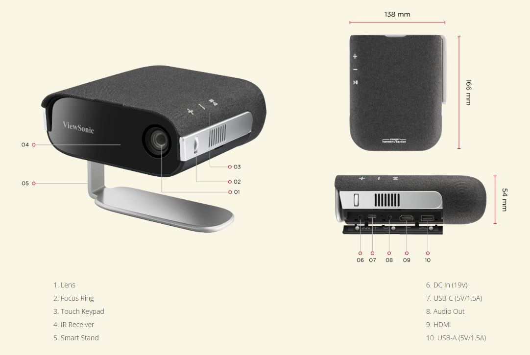 Den smarta LED-projektorn M1XG är en ultraportabel lösning som öppnar dörren till en underhållningsupplevelse utöver det vanliga. Den väger under 1 kg och bygger på den populära designen från ViewSonics M1-serie, med ett patenterat 3-i-1-stativ som fungerar som linslock, ger full 360 graders justerbar projiceringsvinkel och aktiverar projektorn automatiskt.Med en upp till 100 tum stor bild och ljud från Harman Kardon-högtalarna får du en uppslukande upplevelse, oavsett om du använder den hemma eller utomhus. Den levererar upp till tre timmars batteritid för film (i eko-läge), kan drivas via powerbank och erbjuder flexibel bildjustering med både H/V keystone och 4-hörnsjustering.
