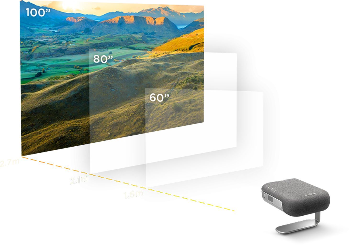 M1MaxN låter dig njuta av storbild var som helst – från sovrummet till takterrassen eller skateparken. Den kan projicera 60 tum från 1.6 meters avstånd och upp till 100 tum från 2.6 meter, och förvandlar snabbt vilken plats som helst till en imponerande bioupplevelse.