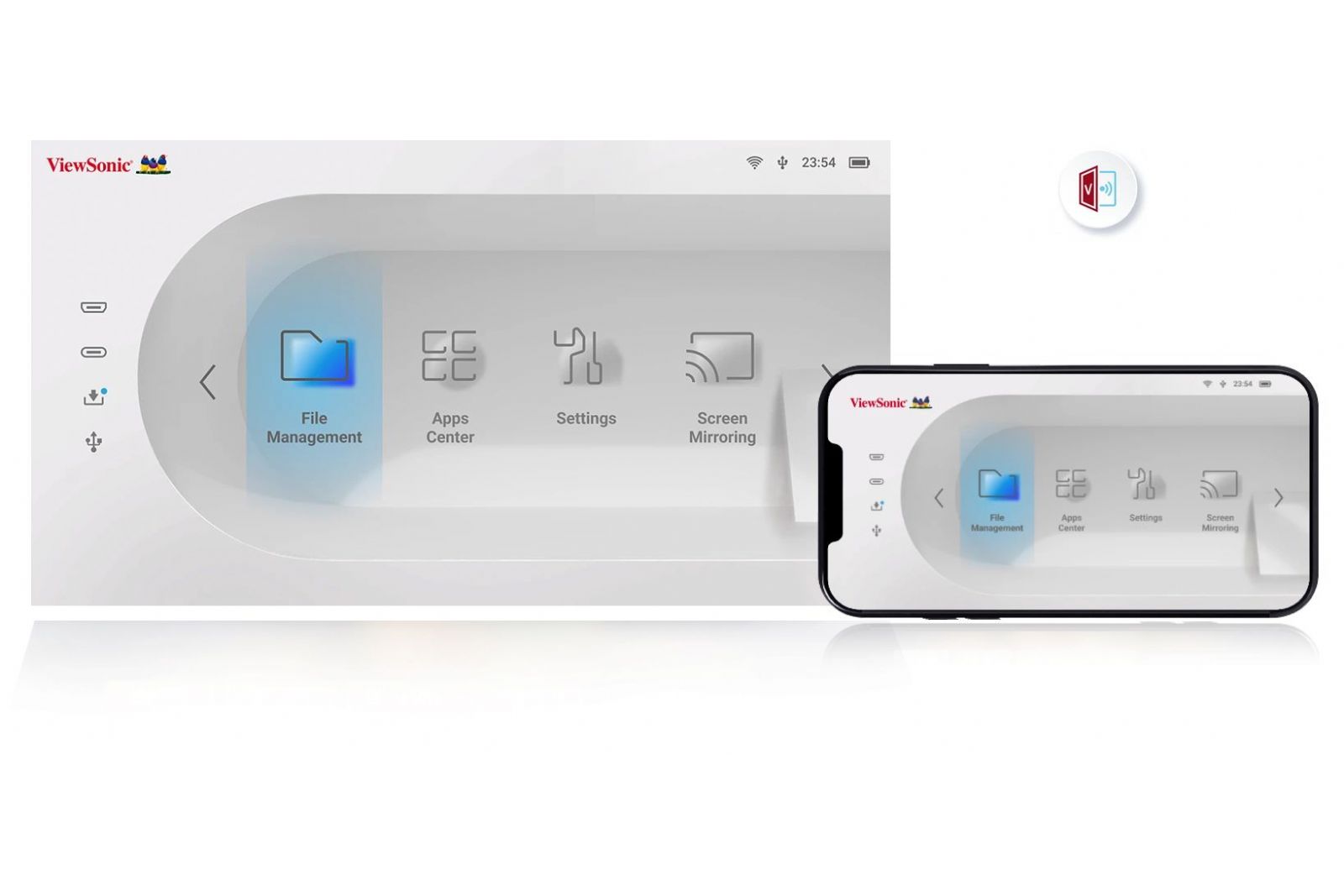 Gör din telefon till en enkel och smidig fjärrkontroll för projektorn. Ladda ner vCastSender-appen, anslut båda enheterna till samma Wi-Fi-nätverk och para ihop dem för att börja styra projektorn direkt. Projektorn kan även styras med den medföljande fjärrkontrollen.