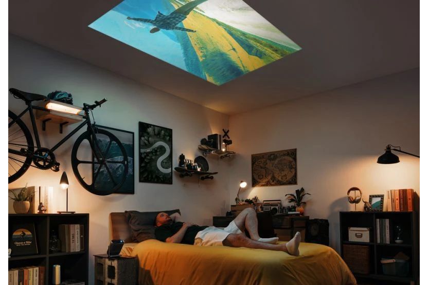 M1MaxN ger dig full frihet att projicera var som helst. Oavsett om du tittar på serier i sängen eller har filmkväll med vänner utomhus, gör 360 graders projektion och automatisk keystone-korrigering att bilderna alltid blir imponerande, oavsett yta – tak, vägg eller golv.