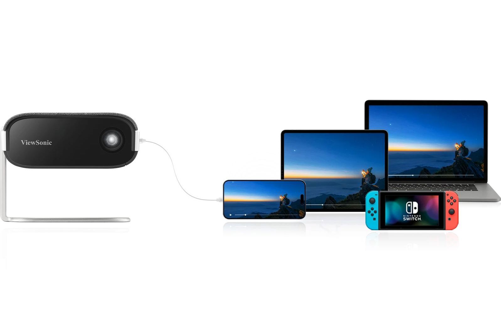 Strömma och ladda samtidigt! Anslut dina mobila enheter, inklusive senaste iPhone, till M1MaxN med en USB-C-kabel och projicera enkelt streamad video, FaceTime-samtal eller Nintendo® Switch-spel direkt på storbildsskärmen – helt utan dockningsstation.