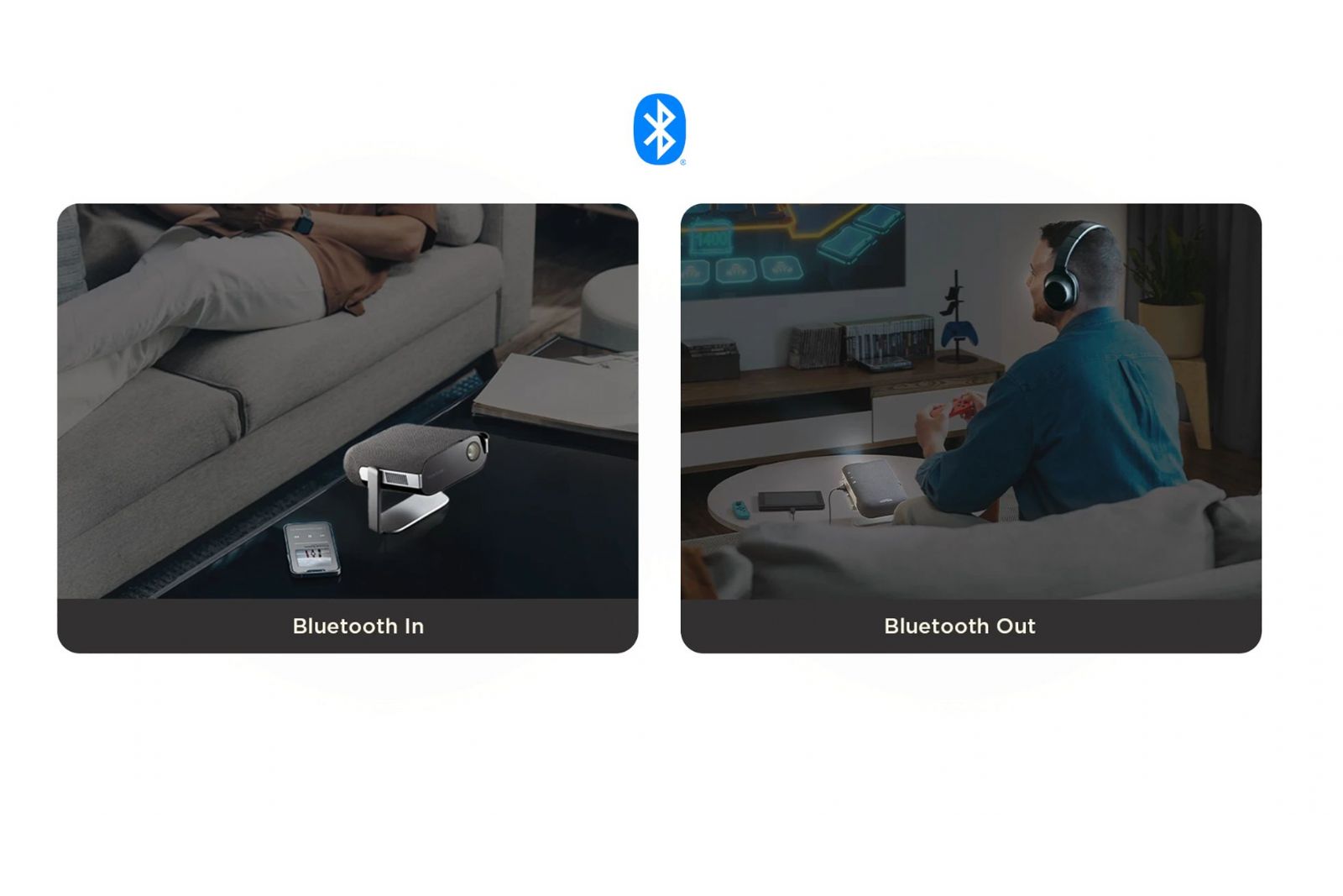 Använd M1MaxN som Bluetooth-högtalare eller koppla in dina Bluetooth-hörlurar för att njuta av storbildsunderhållning på dina villkor.