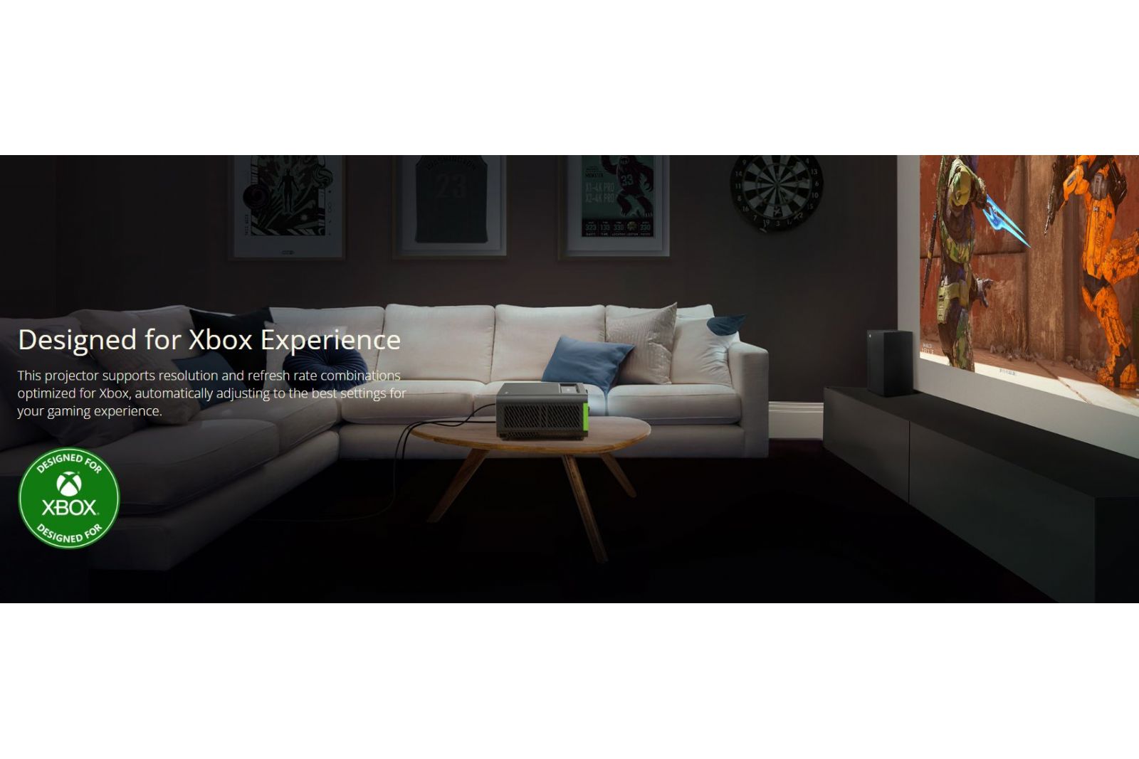 Projektorn känner automatiskt av din Xbox och optimerar upplösning och bildfrekvens för en smidig och responsiv spelupplevelse.