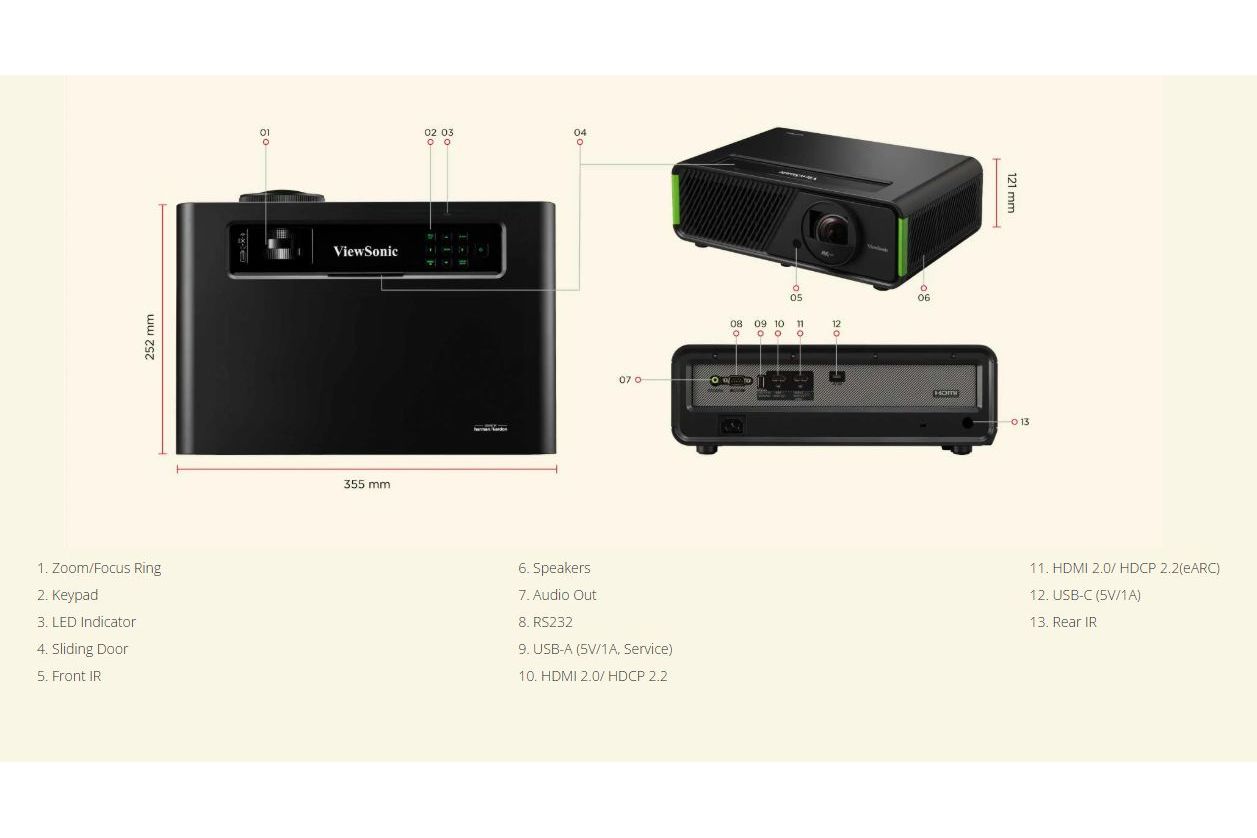 ViewSonics patenterade Cinema SuperColor+™-teknik återger 125% av Rec.709-färgrymden och levererar en visuellt imponerande och verklighetstrogen bildupplevelse.Sound by Harman Kardon