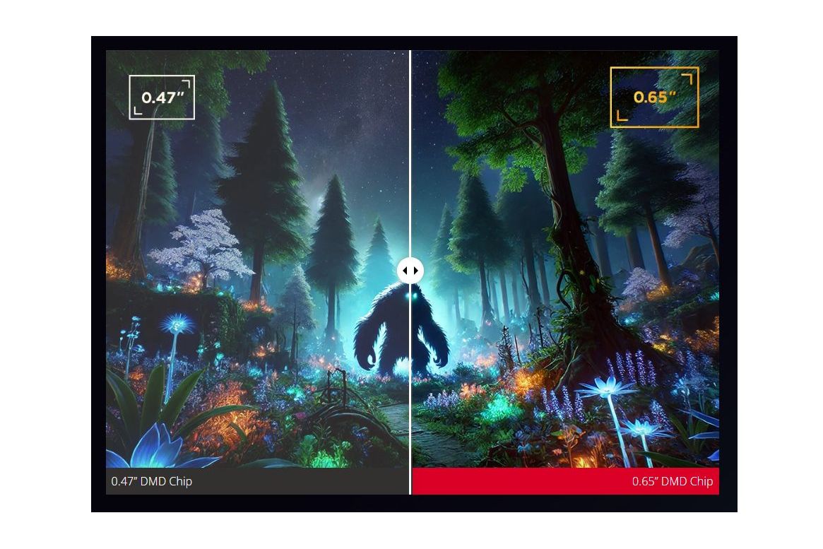 Med sitt avancerade 0.65-tums DMD-chip från Texas Instruments ger X2-4K Pro djupare svärta och högre kontrast än vanliga 0.47-tumschip. Njut av varje detalj i mörka scener och upplev filmer och spel på ett helt nytt sätt.