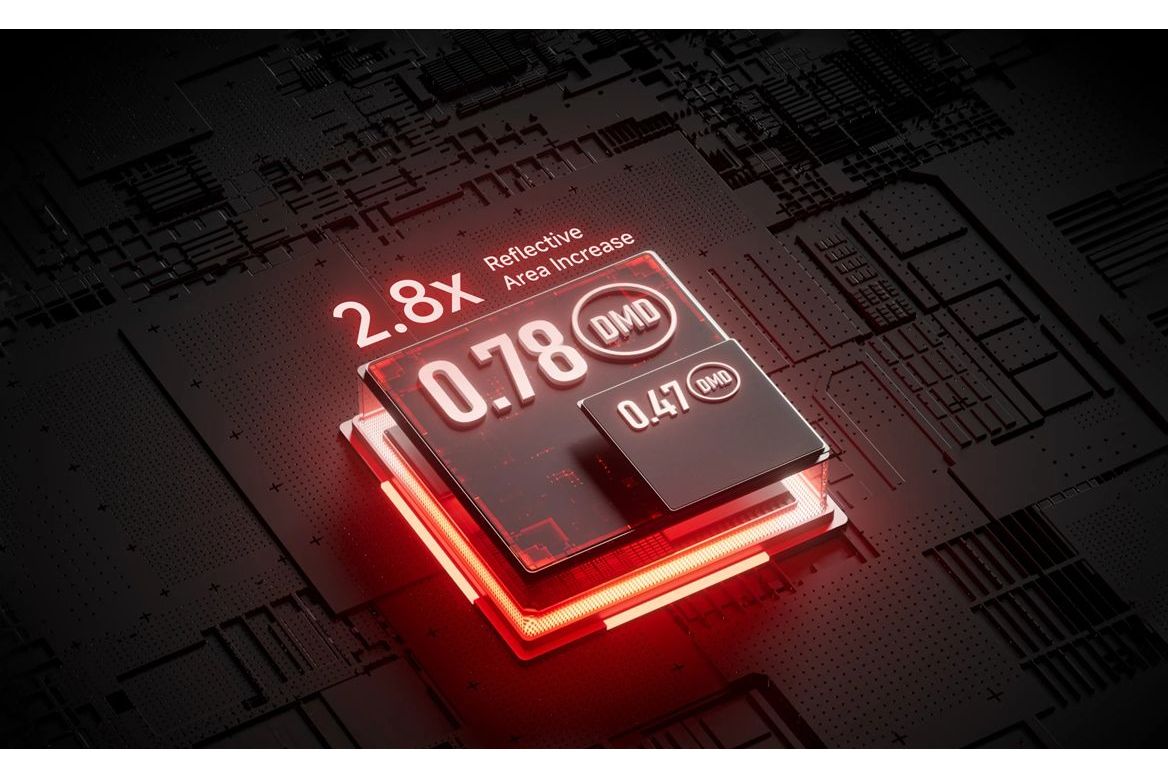 Titan använder en 0,78-tums DMD-panel som ger betydligt större reflekterande yta än många mindre DLP-chip. Det ger högre skärpa, bättre kontrast och mer detaljrika bilder – perfekt för film, sport och spel på riktigt stora bildytor.