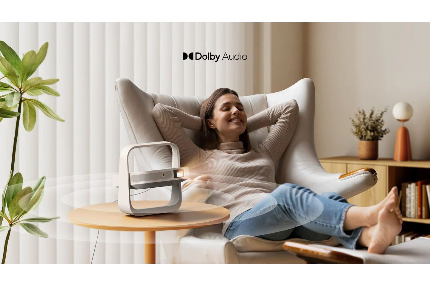 Projektorn har stöd för Wi-Fi 5 dual-band (2,4/5 GHz) för stabil streaming samt Bluetooth 5.1 för anslutning av exempelvis hörlurar eller högtalare. Bland de fysiska anslutningarna finns HDMI med ARC för externa videokällor, USB för uppspelning från lagringsmedia samt DC-ingång för strömförsörjning.