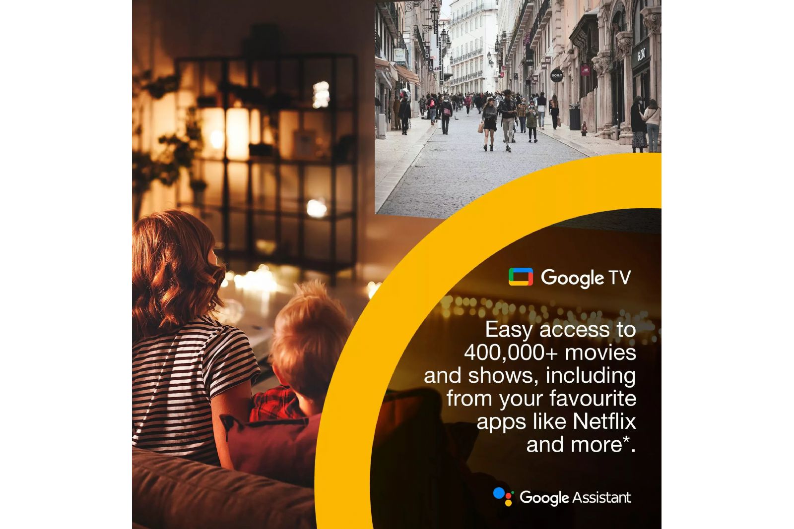 Med Google TV får du tillgång till över 400 000 filmer och serier från mer än 10 000 appar. Allt innehåll samlas på ett ställe och anpassas efter dina preferenser.Med Google Assistant kan du styra projektorn med rösten och via Google Cast streamar du enkelt från mobil eller surfplatta.