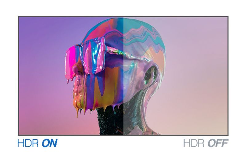 Med HDR10 och HLG samt ett dynamiskt kontrastförhållande på upp till 5 000 000:1 får du djup svärta, tydliga skuggor och en mer realistisk bild.