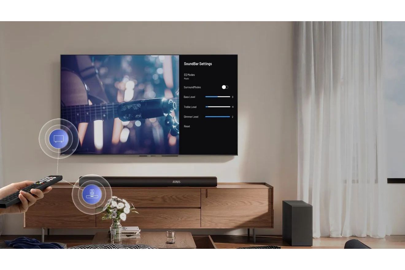 Med EzPlay 3.0 kan du enkelt justera soundbarens ljudlägen direkt från din Hisense-TV-fjärrkontroll och optimera både musik och dialog. Ljudstatusen visas i realtid på TV:n för smidig och sömlös kontroll. EzPlay fungerar endast med utvalda Hisense-TV-modeller.