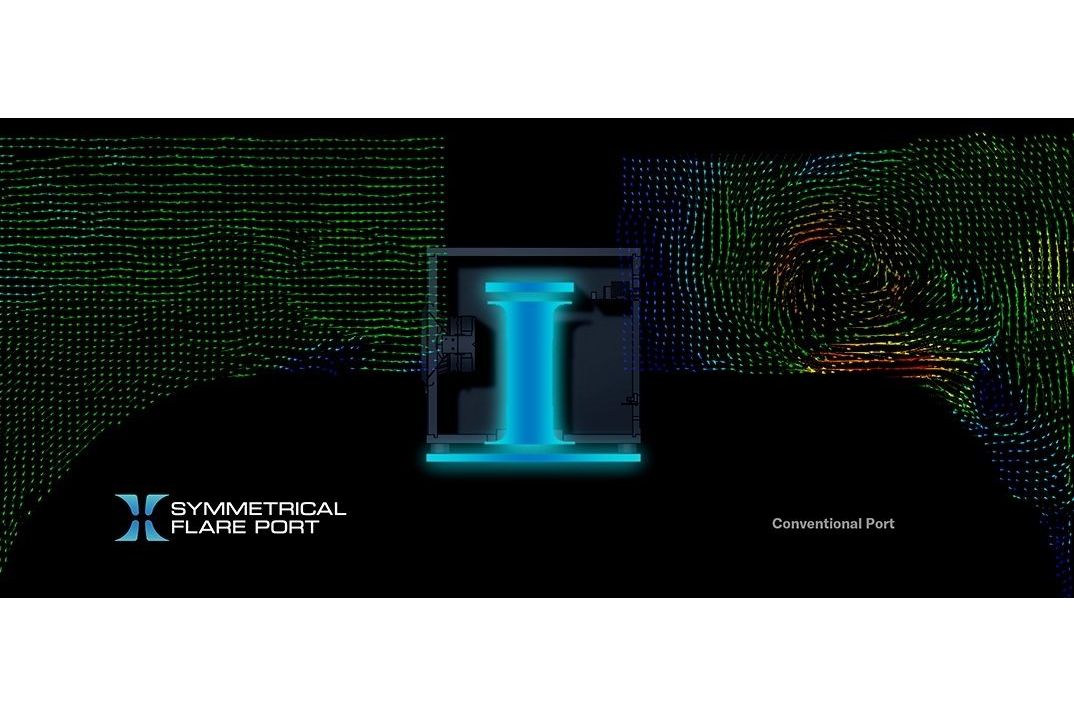 Subwoofern i det här systemet använder Symmetrical Flare Port®-teknik, som nyligen utvecklats genom noggranna PIV-mätningar (Particle Image Velocimetry) och ger en kraftfull bas med djup resonans. Den symmetriska horisontella/vertikala portstrukturen säkerställer ett extremt smidigt utsläpp av de kraftiga luftflöden som genereras vid basåtergivning.Som ett resultat av detta har portljudet reducerats med 20 dB jämfört med konventionella modeller, vilket möjliggör ren basåtergivning som är både kraftfull och djup.