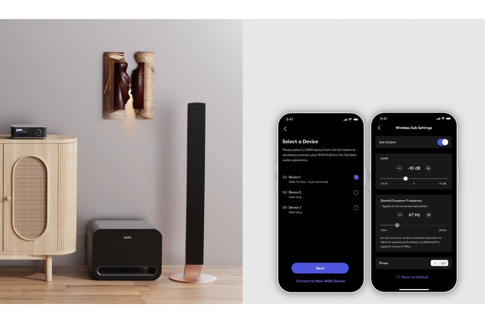 Välj dina huvudhögtalare eller förstärkare från WiiM i appen, eller anslut via RCA sub-out, och börja njuta av ljudet.