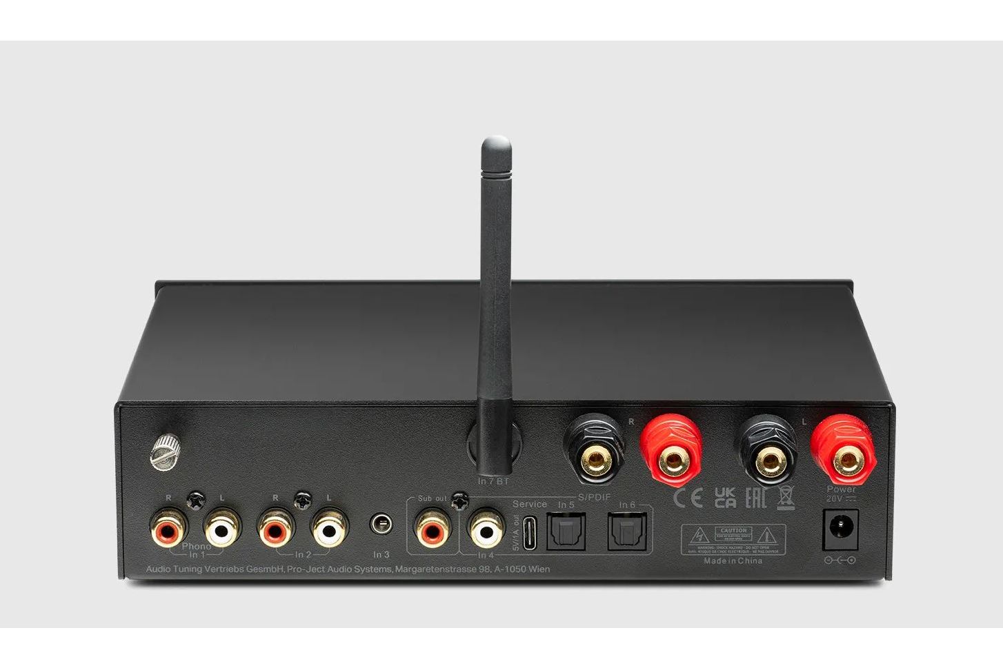 Här finns phono-ingång (MM) för skivspelaren, RCA och 3.5 mm för linjenivå samt optisk och koaxial S/PDIF för exempelvis TV eller CD-transport. Dessutom finns Bluetooth med aptX och aptX HD för smidig trådlös streaming.