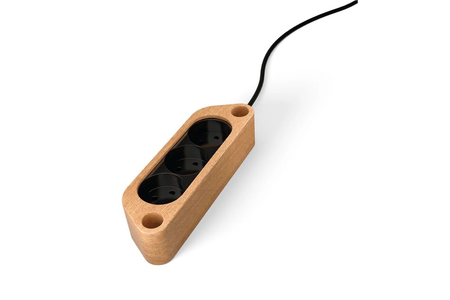 Ge ditt TV-stativ från Kristian Juul en ren och stilren look med detta eluttag, vackert klätt med ett hölje av oljad ek. Det diskreta uttaget monteras på baksidan av stativet och döljer effektivt sladdarna som annars kan hänga ner under TV:n. Kabeln är anpassad för att smidigt löpa i den integrerade kabelkanalen i stativets ben.