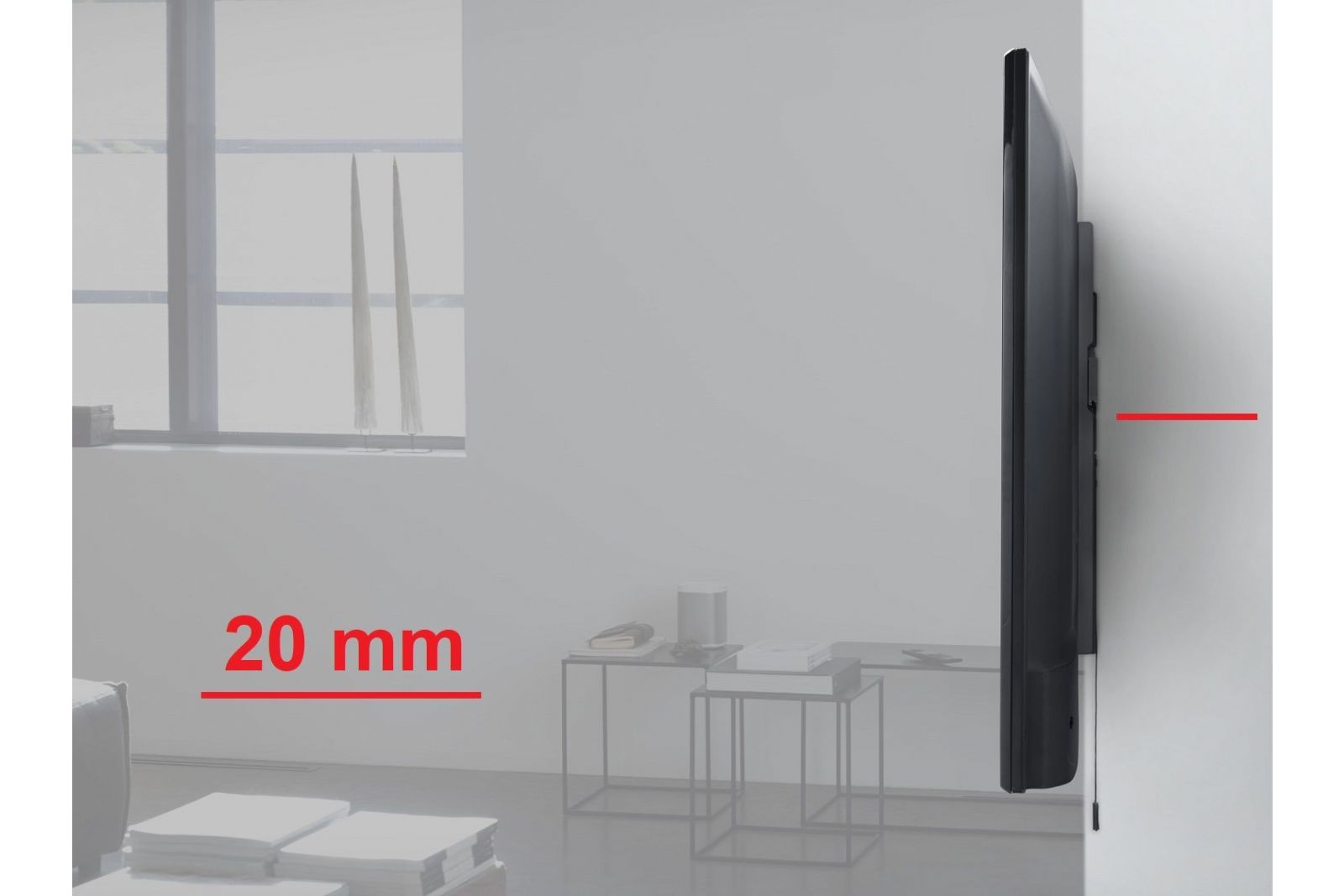 WM 6422 ingår i One For Alls Ultra Slim Line och kombinerar en stilren design med hållbara material. Med ett väggavstånd på endast 20 mm får du en diskret installation där TV:n sitter nära väggen men ändå med utrymme för funktionalitet.Den robusta konstruktionen är optimerad för att hantera både medelstora och större TV-apparater med bibehållen stabilitet.