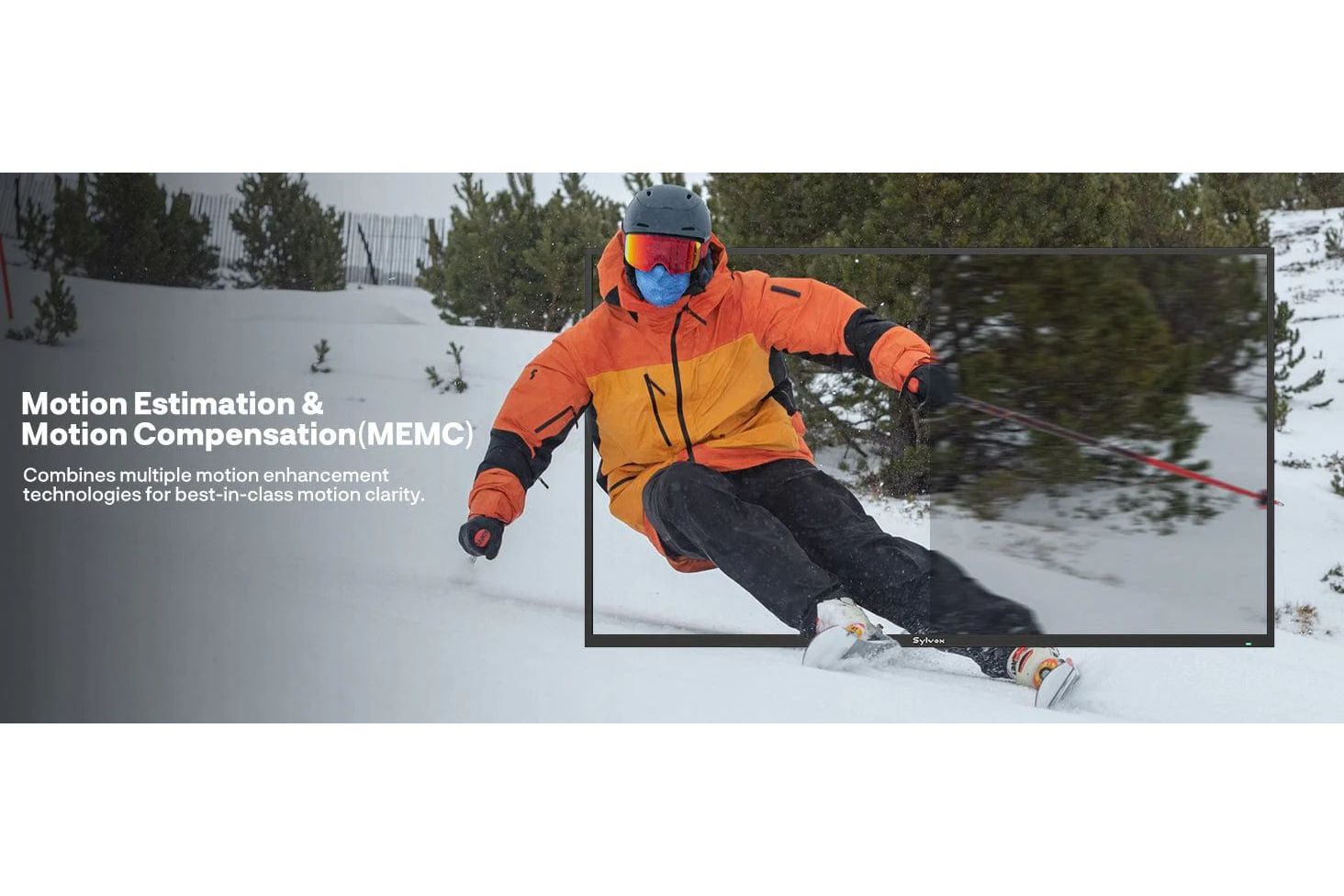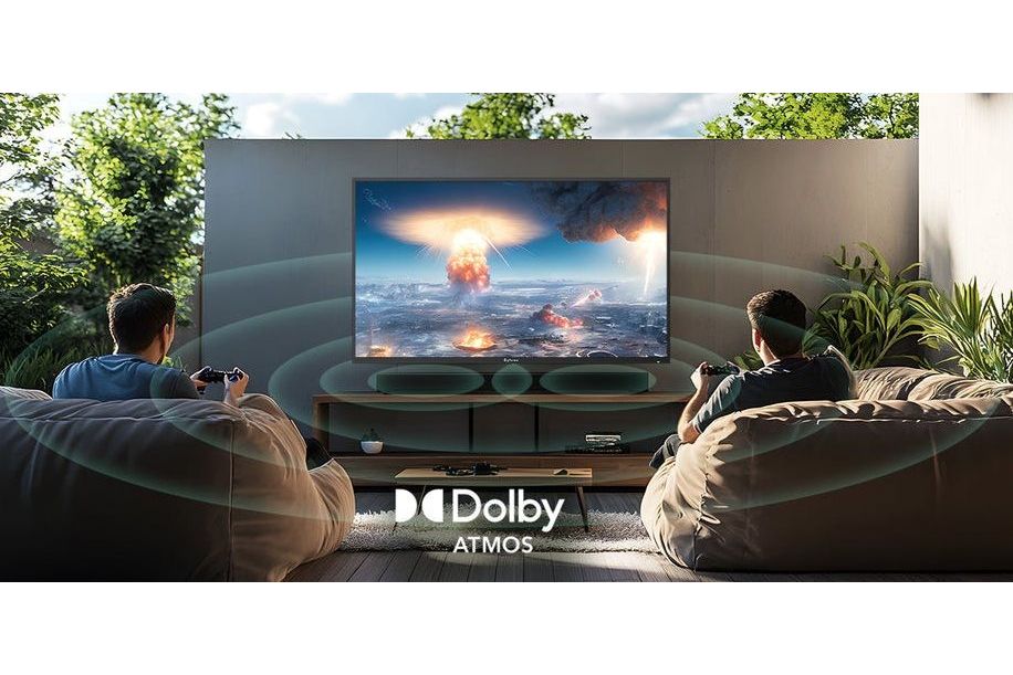 Det integrerade 60 watts Dual-Speaker-systemet är optimerat för att leverera ett klart och kraftfullt ljud även i öppna utomhusmiljöer där ljud annars lätt försvinner. Med stöd för Dolby Atmos skapas en mer omslutande ljudbild som ger en känsla av rymd och närvaro, oavsett om du tittar på film eller sport.Den inbyggda subwoofern förstärker de lägre frekvenserna och bidrar med fylligare bas, vilket ger en mer komplett och engagerande ljudupplevelse utan behov av externa högtalare.