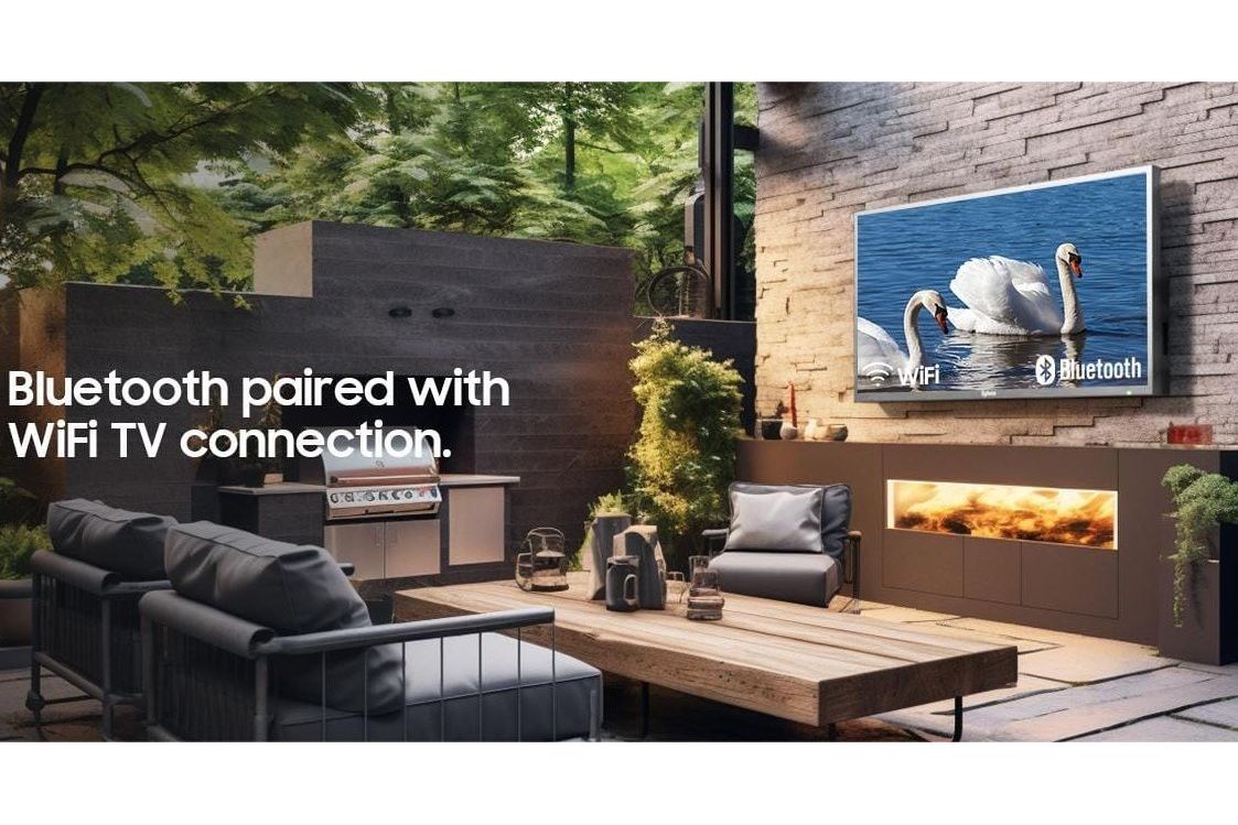 Till skillnad från vanliga TV-apparater är den här modellen optimerad för användning i direkt solljus. Kombinationen av hög ljusstyrka och antireflexbehandlad panel gör att bilden förblir tydlig, kontrastrik och färgstark även mitt på dagen.