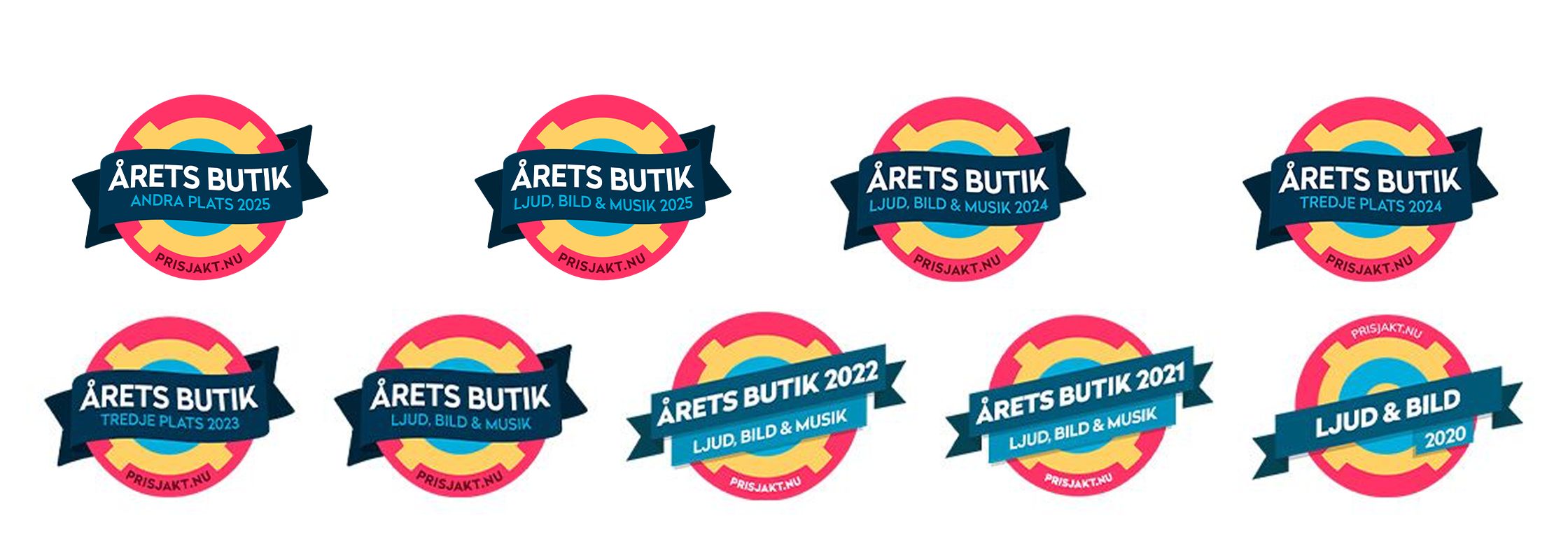 Varje år är det Prisjakts användare som avgör Årets butik, och vi är otroligt stolta att Hembiobutiken har utsetts hela 6 gånger inom ljud-, bild och musikkategorin. Förutom det så tog vi 2024 en tredje plats som Årets Butik samt klättrade till en andra plats under 2025 i alla kategorier.