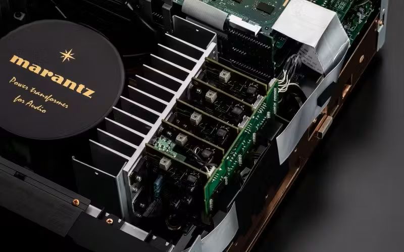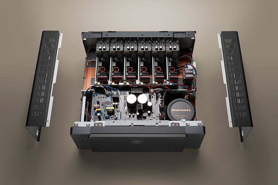 Marantz fokuserar mer på kretsdesign, vibrationskontroll och avskärmning mellan sektionerna. Det gör att brus, distorsion och interna interferenser minimeras.